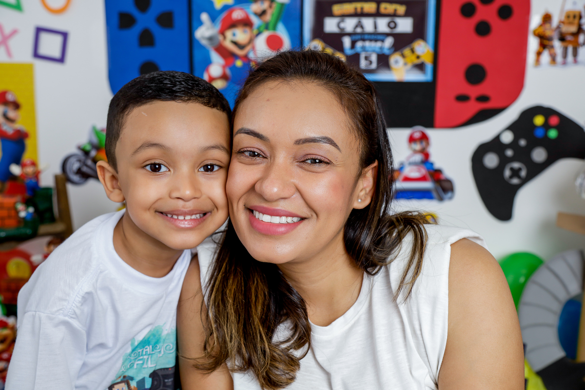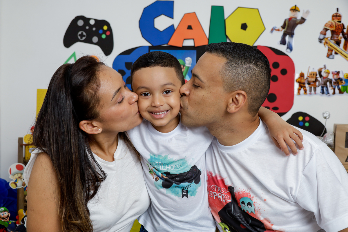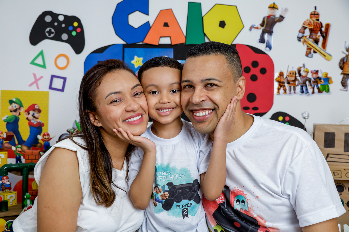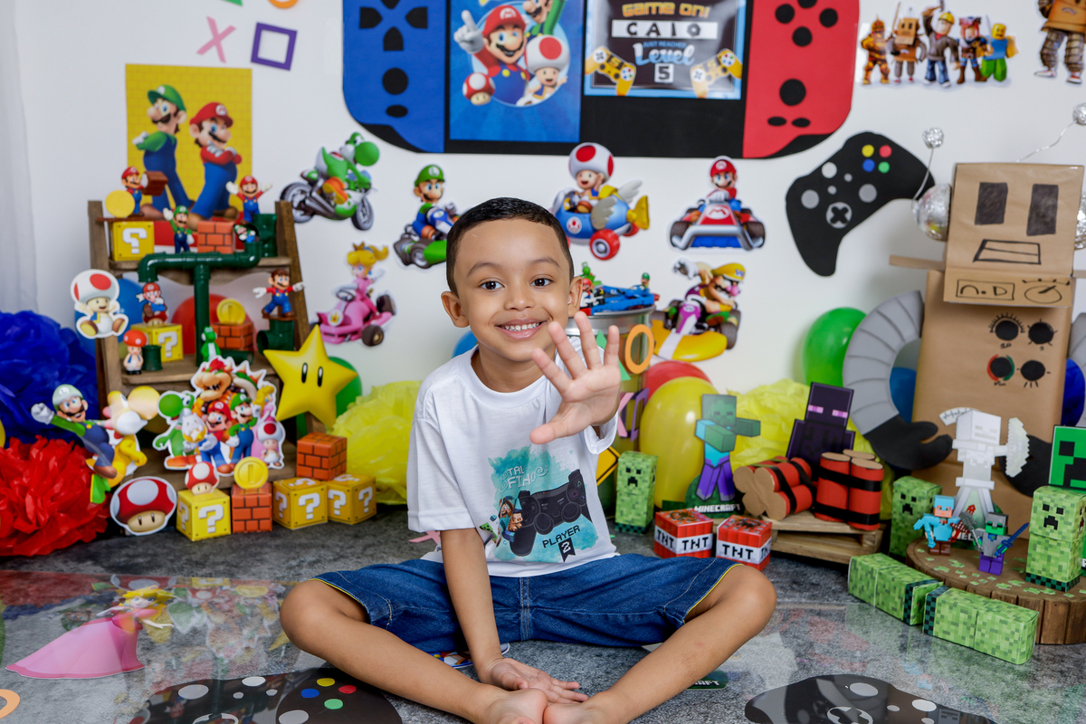 E o tema para comemorar foi o universo dos games, em especifico Mario Bros. e Roblox.