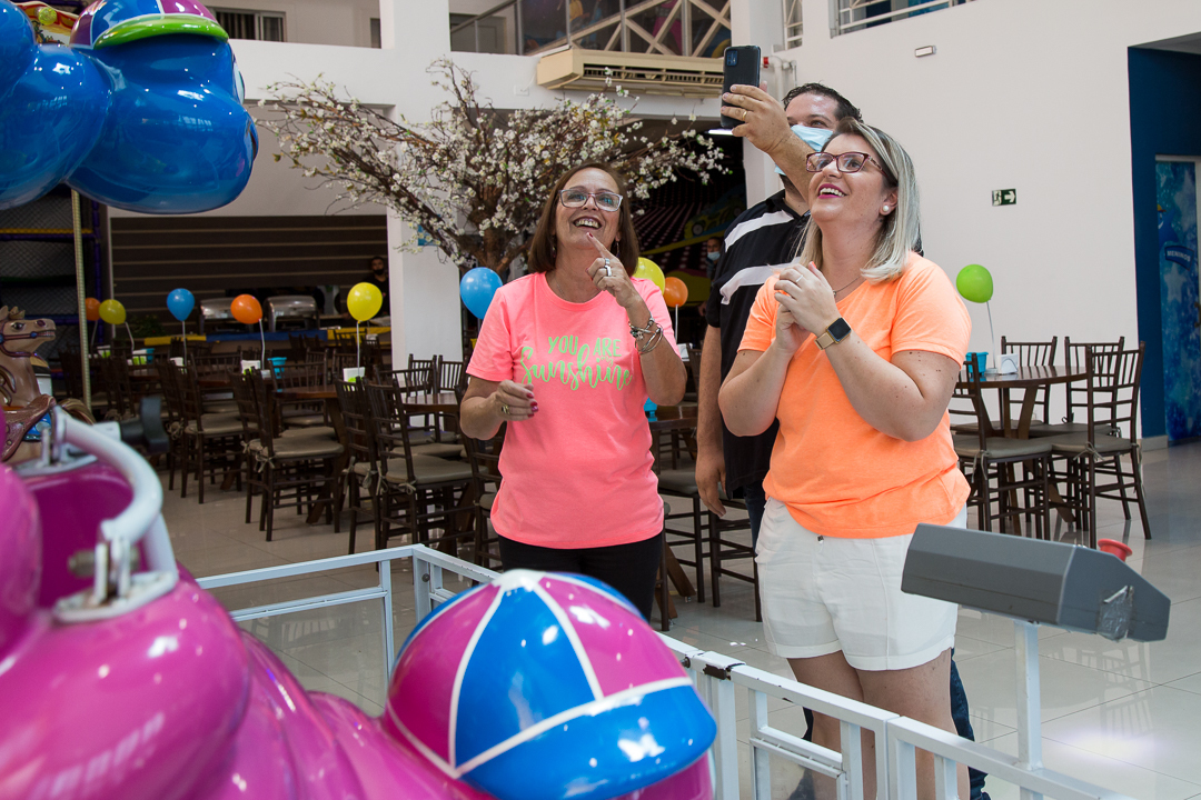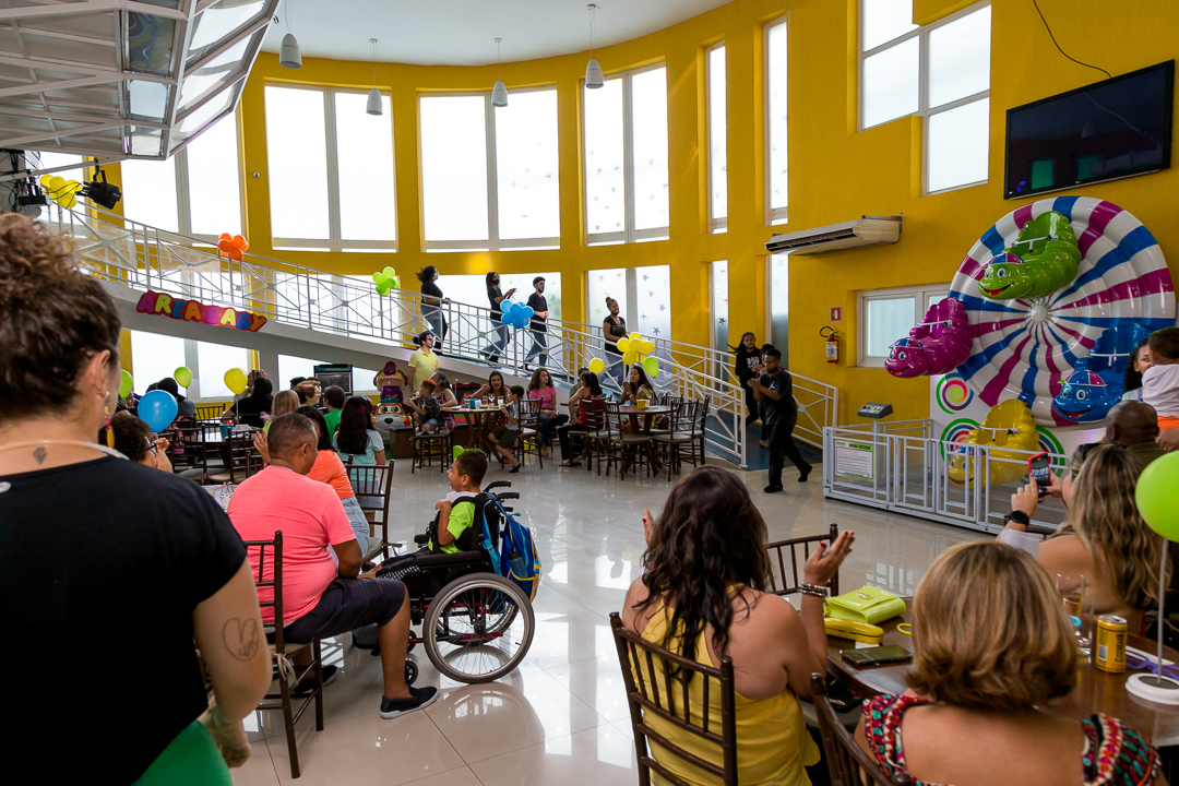 O buffet tem uma rampa , onde o aniversariante desce na hora do parabéns.