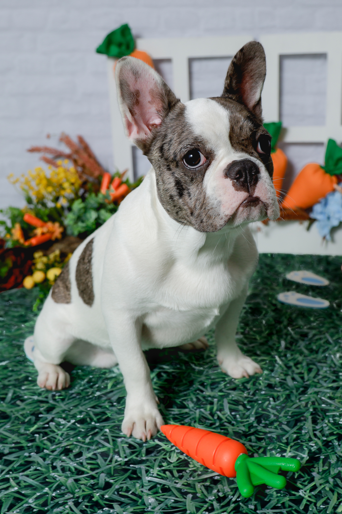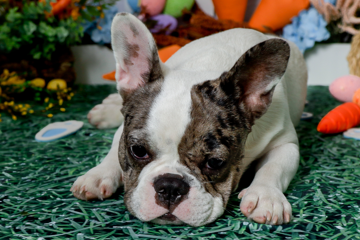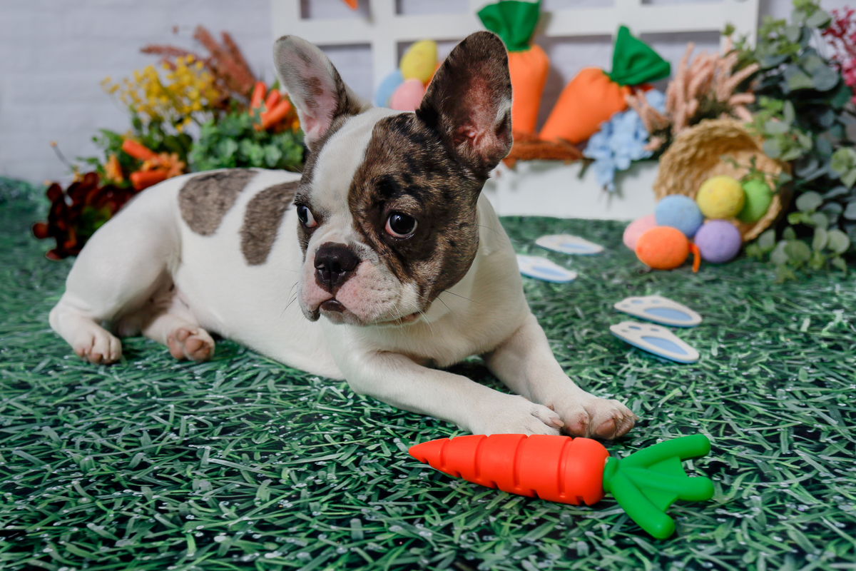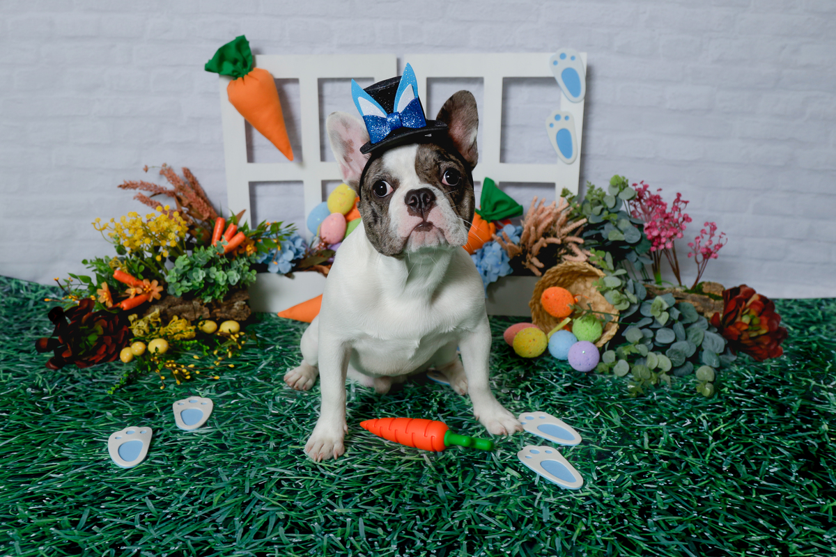 O estúdio recebeu o Romeu, esse buldogue francês de 6 meses.